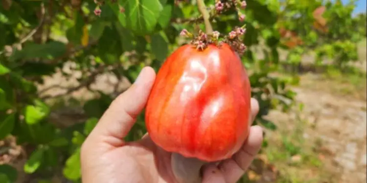 A castanha possui padrão adequado para o mercado internacional, enquanto o pedúnculo, de coloração vermelha e formato cônico, é indicado principalmente para o processamento industrial.
