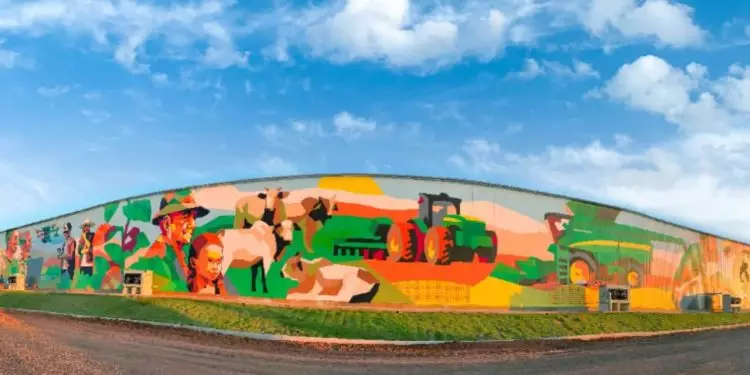O painel é uma das maiores instalações artísticas da região e foi produzida às vésperas de uma importante feira agropecuária em Rio Verde.